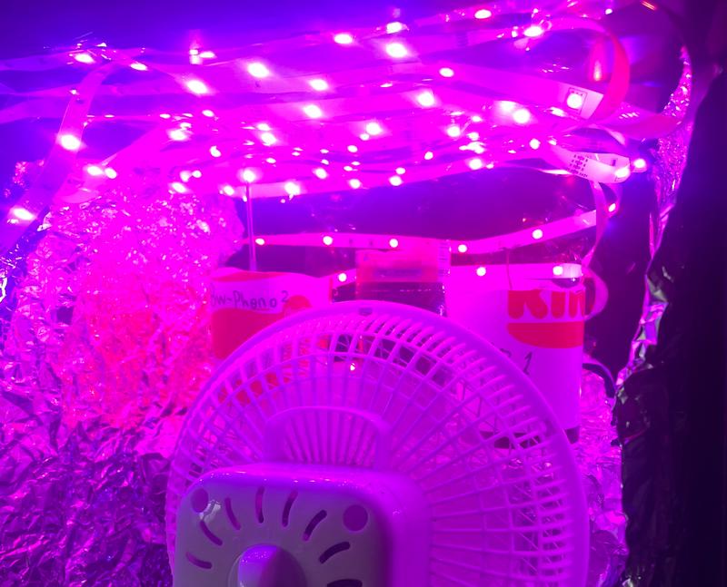 Summer is round the corner, you are honestly better off putting it on a window sill and itl yield a lot more than this current setup as the led strip has minimum to zero light output which can be tranferred via photosynthesis, my honest opinion is just whack it on the window sill and youl be more than impressed. ✌️