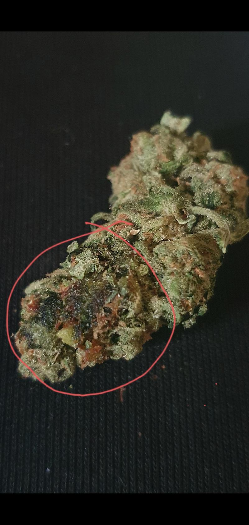 Where the bud had been touching the wetness/vape juice/flavor spray its all soggy and unsmokable :(